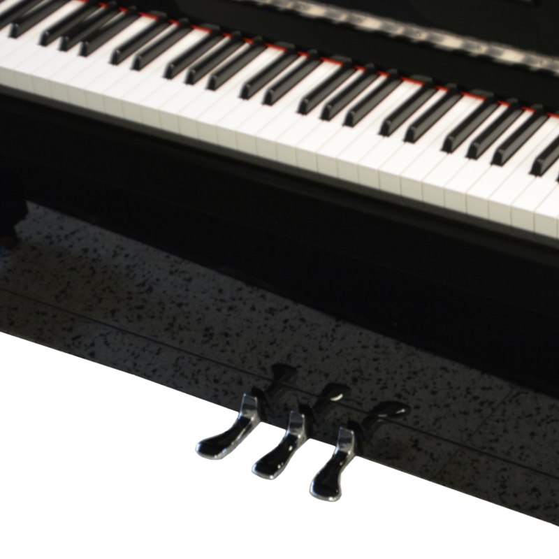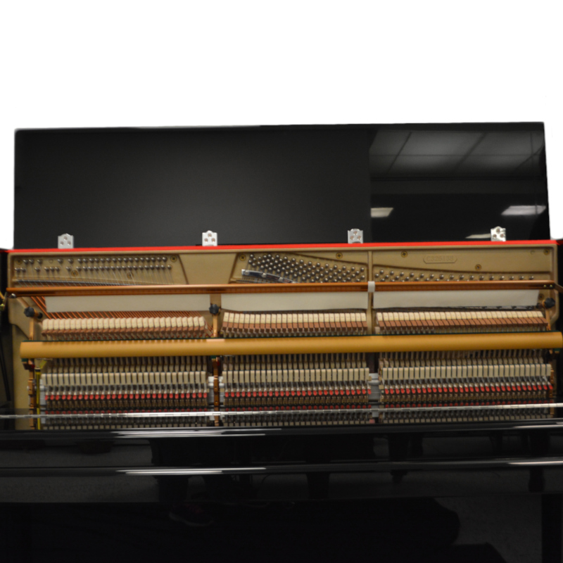 Big sound in a compact design! At just 48″ in total height, the Strunz sounding board brings huge sound and colorful tones from this Schiller Concert Grand Piano!